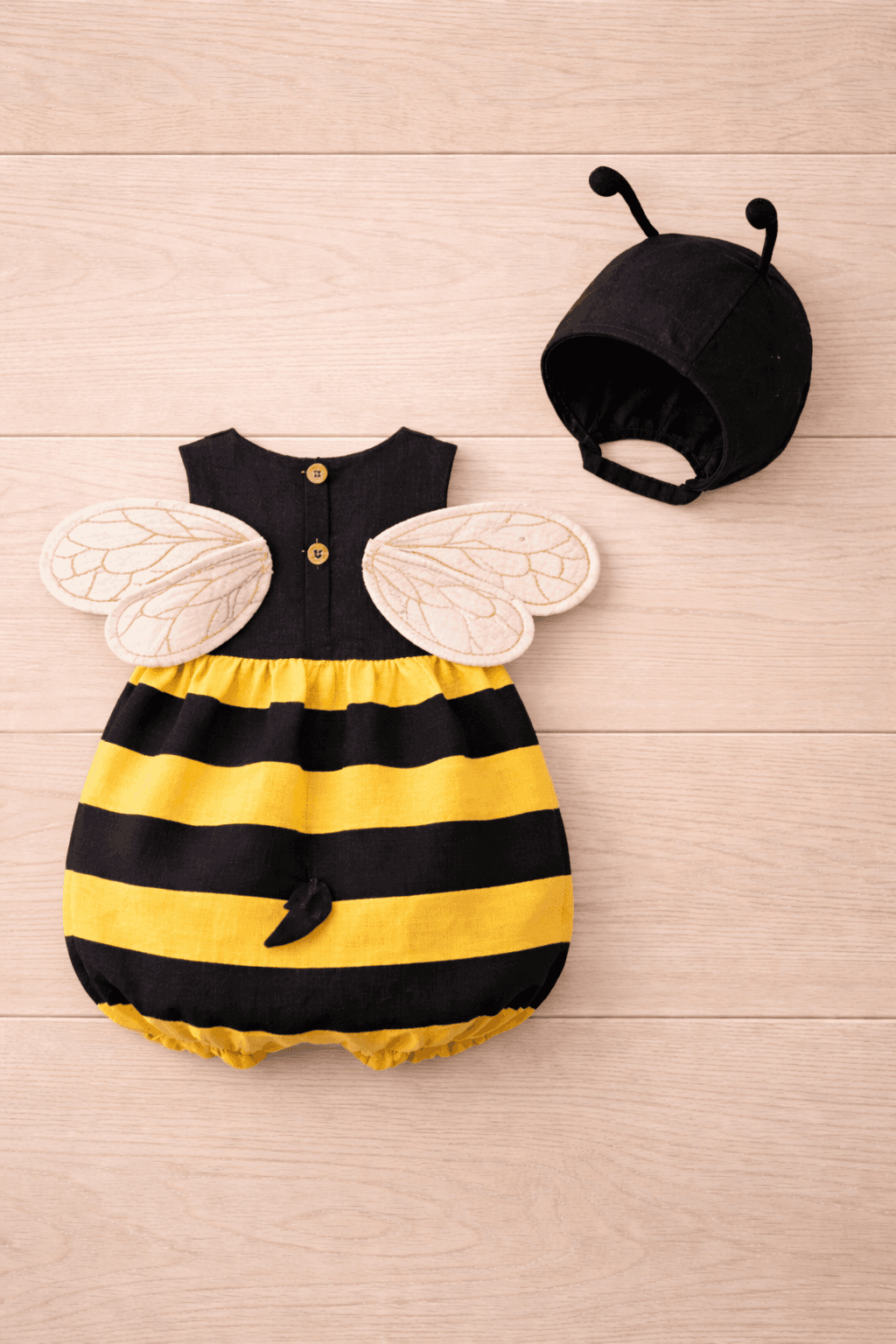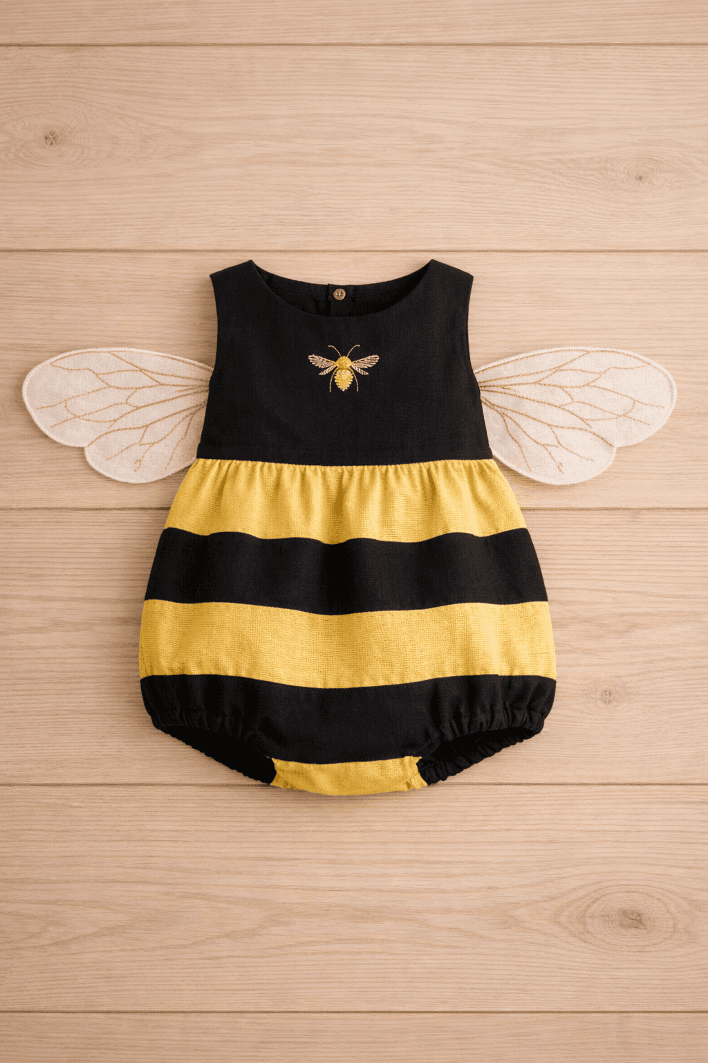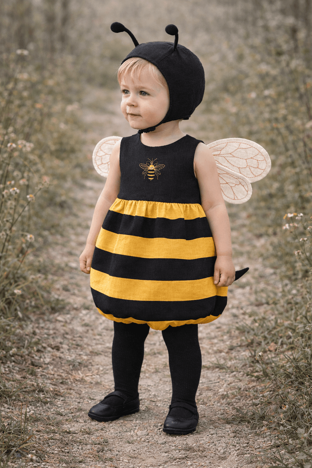 Crafted from natural linen, the Honey Hum costume combines a comfortable fit with thoughtful detailing. Soft, textile wings with delicate embroidery add character while remaining lightweight and flexible. Designed to support movement and imaginative play.