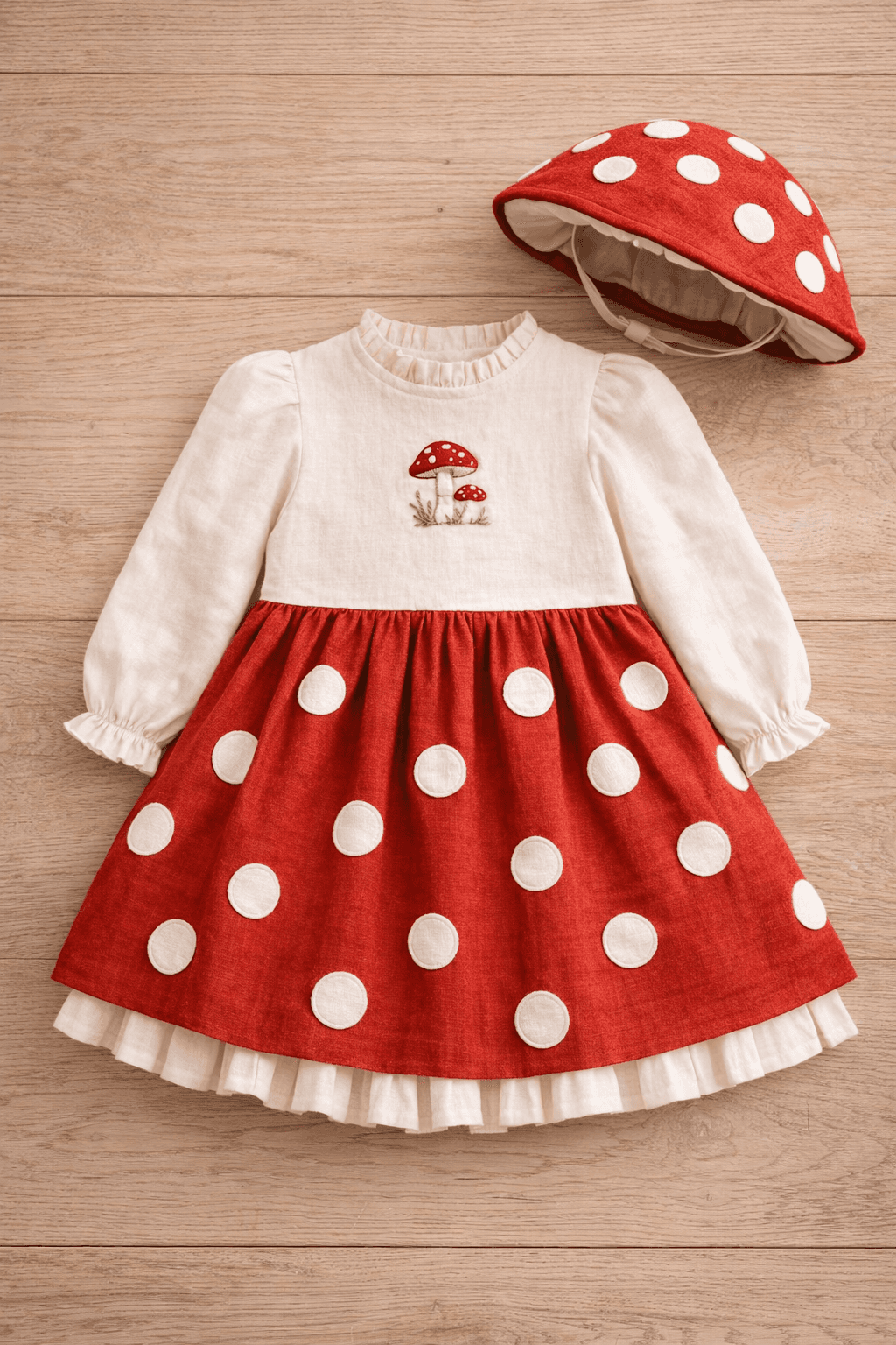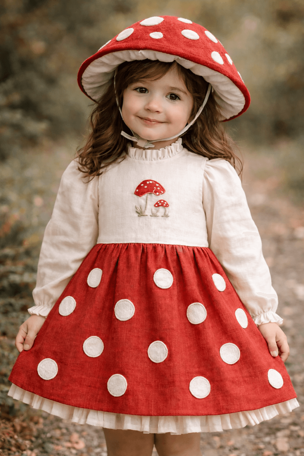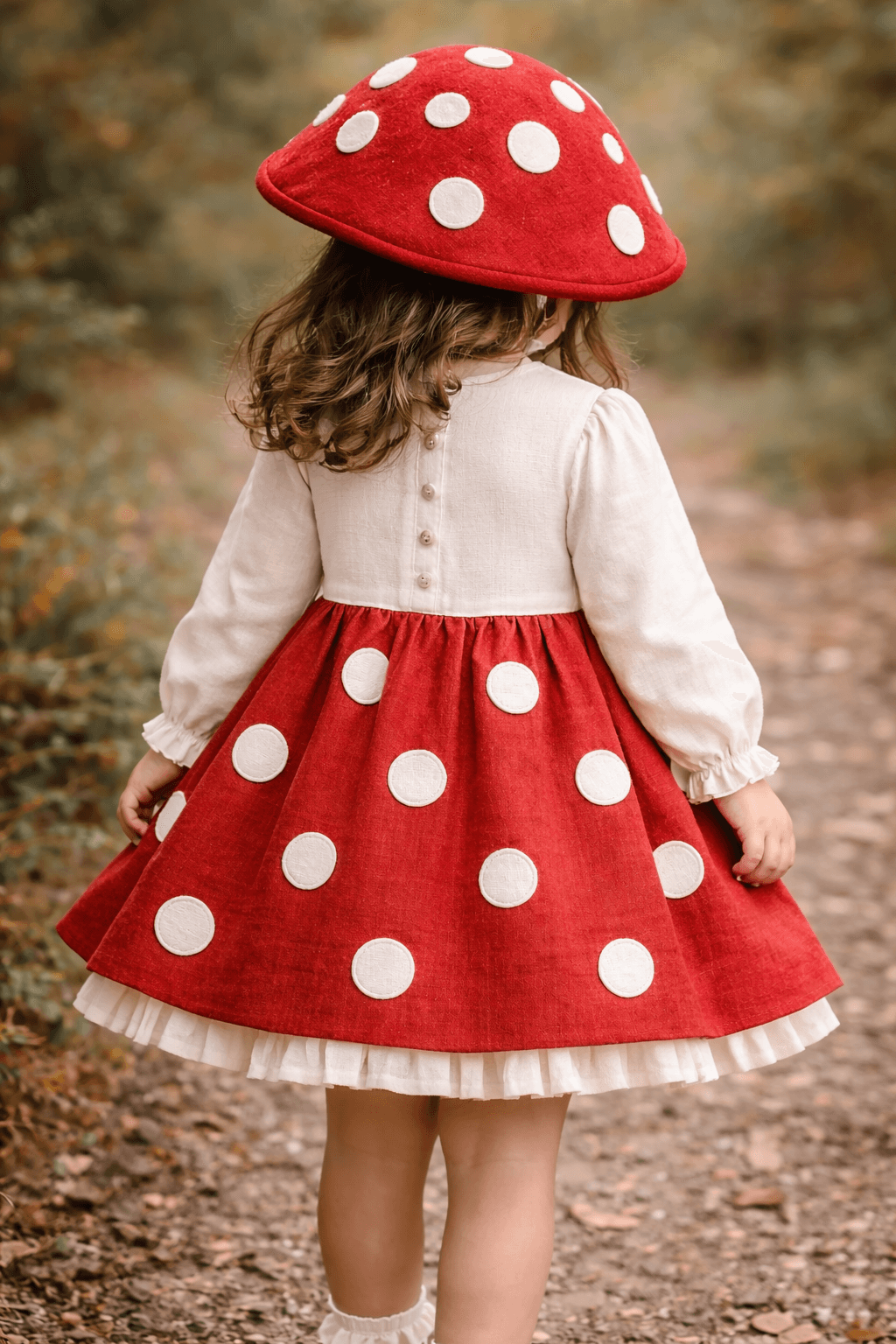 The Merry Mushroom costume is crafted from natural linen and designed with volume and softness in mind. Thoughtful proportions create a playful yet understated shape, while carefully placed details add depth without excess. Comfortable, breathable and made to move naturally with the child.